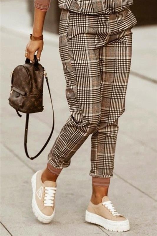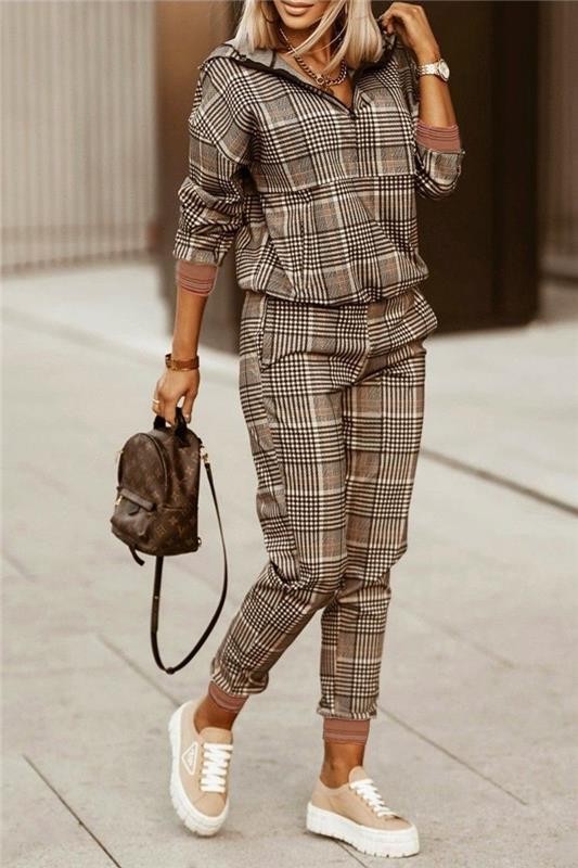 - Актуално предложение за вашето стилно ежедневие - дамски комплект от две части с ефектно каре.
