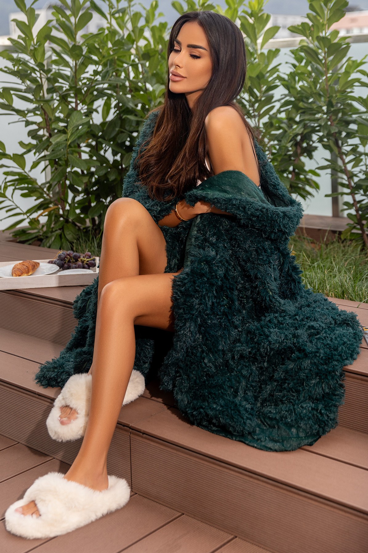 - Лицевата страна е от пухкава материя с еко косъм с дължина 2 см, а вътрешната страна е от гладък и равномерен плюш.