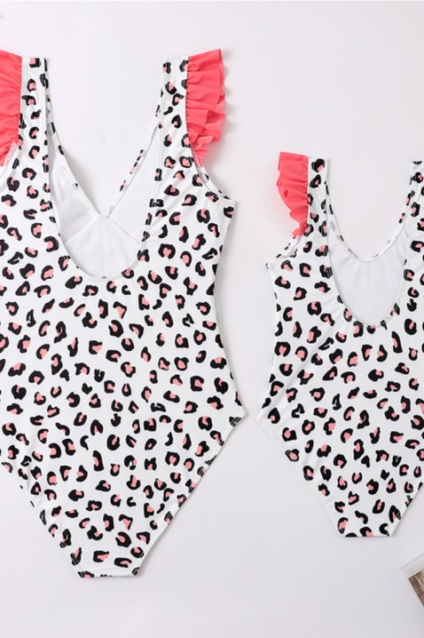 - Модерен цял бански костюм за момиче с атрактивен принт в актуални цветове, с който Вашата принцеса ще изпъкне на плажа.